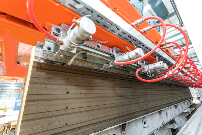 نظرًا لأن المعدات الأساسية في خط إنتاج AAC ، يمكن لآلة القطع ، التي تضم جهاز قطع رأسي وجهاز قطع أفقي ، قطع AAC من جميع الجوانب الستة. وبالتالي يمكن قطع الكتل أو الألواح بدقة إلى قطع مع بعد معين.